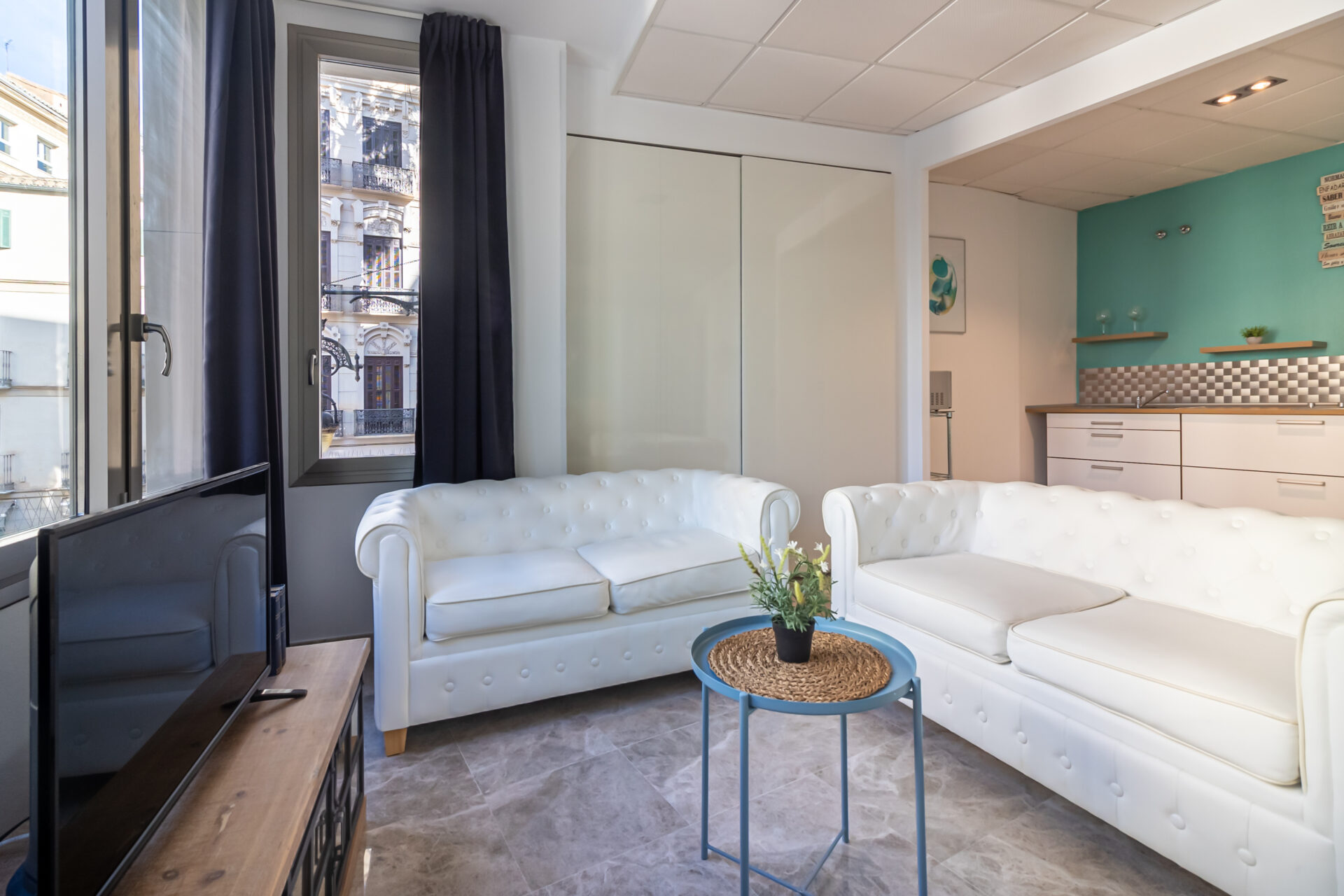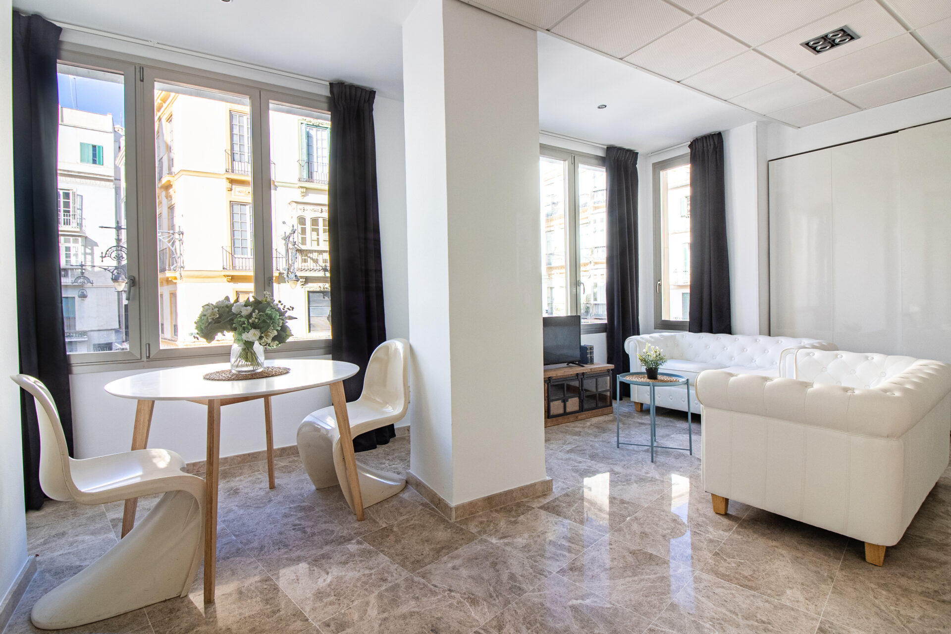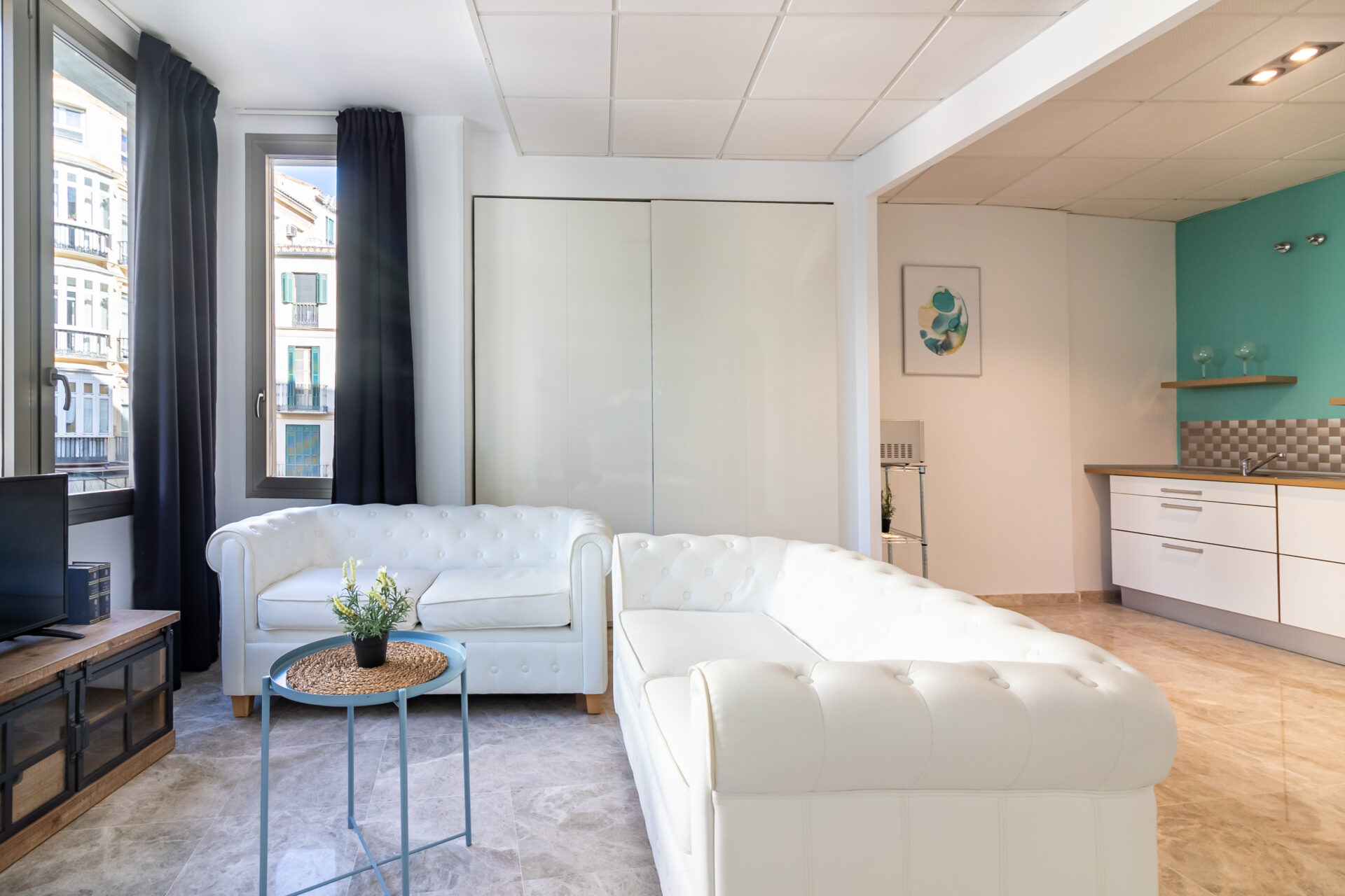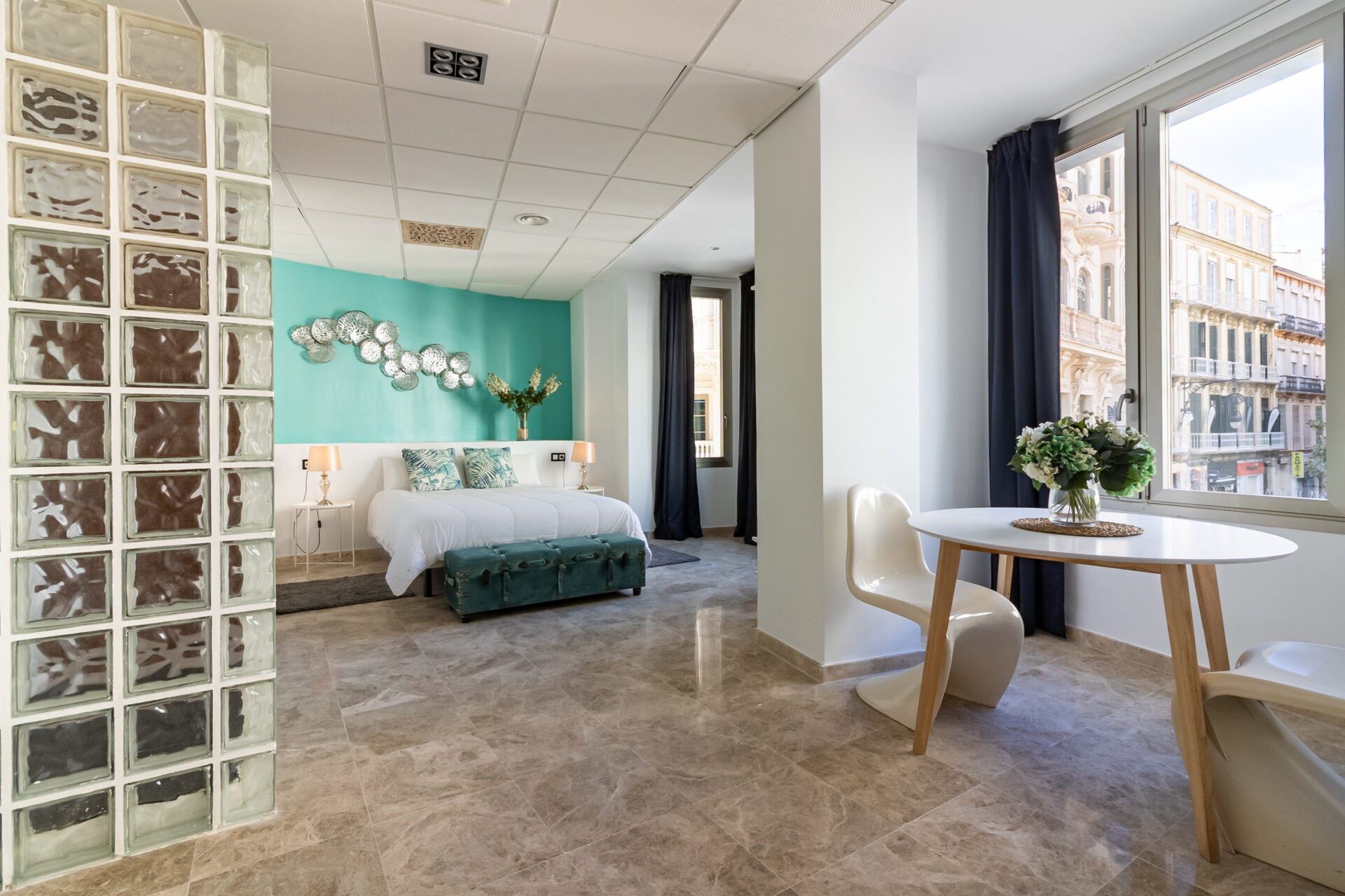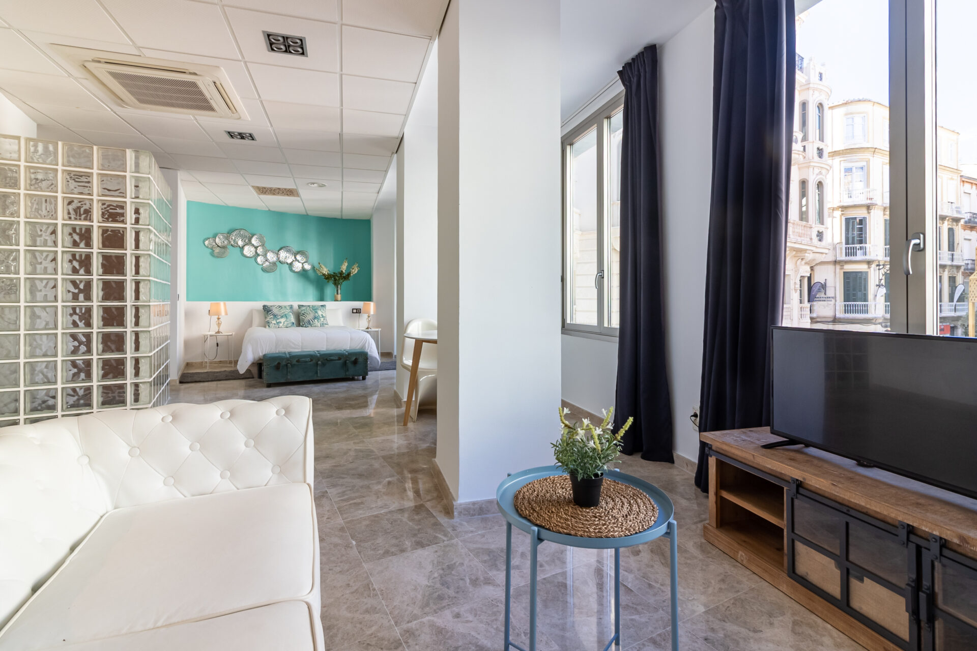 Nuevos Apartamentos Turísticos en el corazón de la ciudad de Málaga, ubicados justo entre la entrada al casco antiguo y puerto marítimo, en el área más emblemática y exclusiva de Málaga. El mobiliario y electrodomésticos son de alta calidad, y se han diseñado con mucho detalle las líneas y colores del espacio, lo que hace del apartamento la mejor opción para su visita a Málaga.
