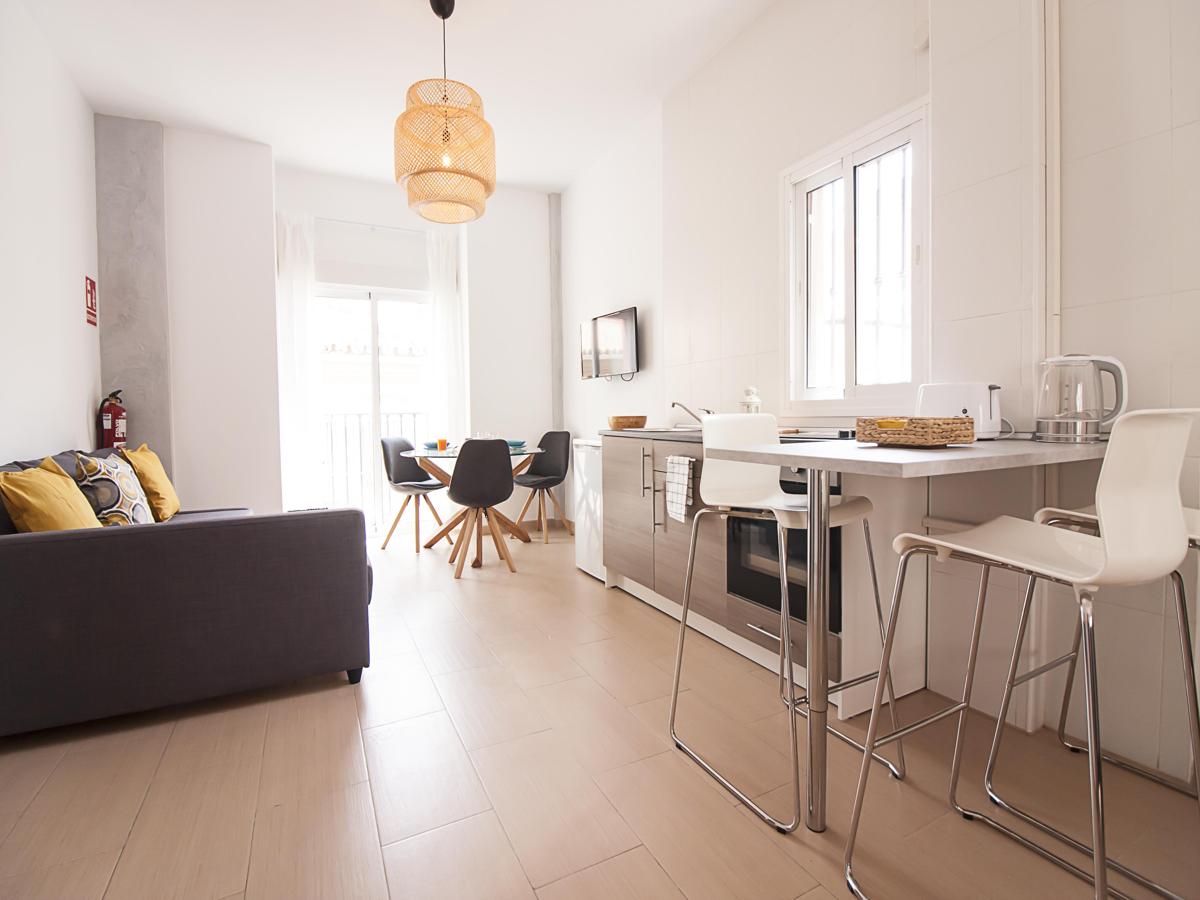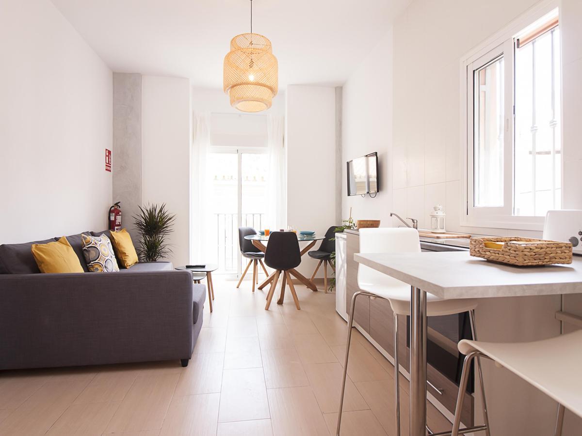 Estudio grande Rayito en el centro de Málaga.  Estudio completamente nuevo, al lado de Plaza de los Monos y cerca de la Plaza de la Merced y el centro histórico de la ciudad de Málaga. A sólo 15 minutos a pie de la playa de la Malagueta. La ubicación es perfecta para hacer turismo, ir a la playa, disfrutar de la vida nocturna o para un viaje de negocios.